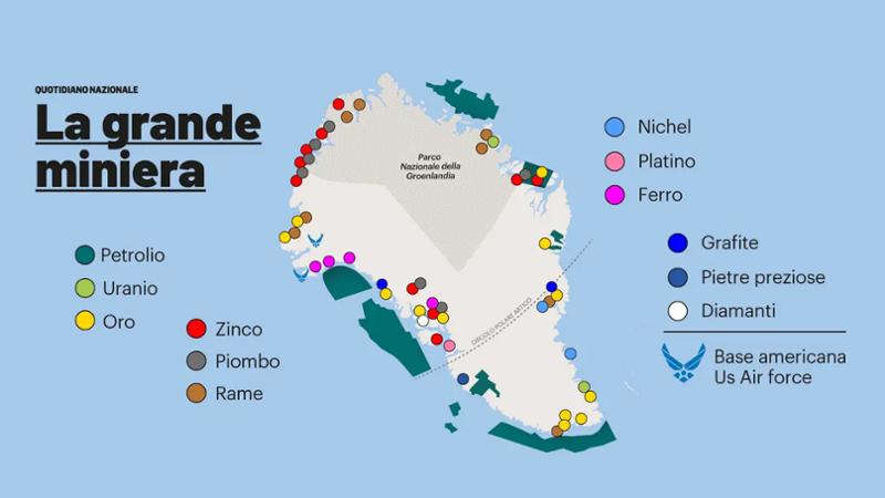 La mappa delle Groenlandia: terre rare, gas e giacimenti di petrolio