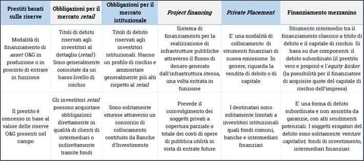 In ambito O&G, gli investitori istituzionali si sono tradizionalmente limitati ad investire nel capitale azionario delle imprese e a sottoscrivere obbligazioni emesse da compagnie leader di mercato. Nel finanziamento delle attività, le banche hanno sempre svolto un ruolo dominante attraverso prestiti garantiti e non garantiti.
