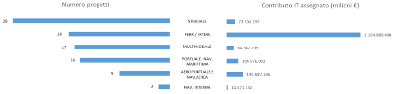 Progetti finanziati in Italia dal meccanismo CEF (per tipologia e contributo)