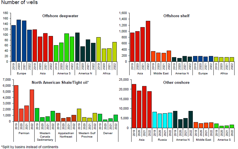 Fig. 2 - Attività di perforazione per segmento di offerta e continenti