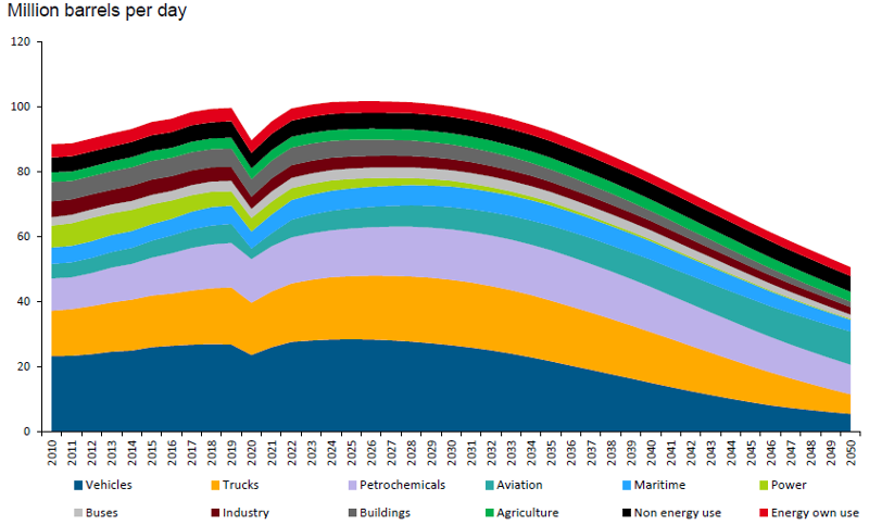 Questa previsione è in linea con la nostra analisi della domanda di prodotti petroliferi, rappresentata nella Figura 4, che nel suo scenario base (“Mean case”) prevede il ritorno dei consumi ai livelli pre-pandemia solo nella seconda metà del 2022. Dopo il crollo della domanda a 89,6 milioni di barili al giorno nel 2020 dai 99.6 milioni registrati nel 2019, Rystad Energy stima la domanda di petrolio a 99.4 milioni di barili giornalieri nel 2022. La ripresa sarà garantita dal ritorno della domanda nel settore trasporti, inevitabilmente e maggiormente colpito dai lockdown. Sarà il mercato asiatico, trainato dalla Cina, il maggior promotore della crescita della domanda fra il 2020 e il 2025, mentre i tradizionali grandi consumatori di petrolio, Stati Uniti ed Europa, ne vedranno un graduale declino, causato dalla transizione verso risorse più pulite e dalla rapida introduzione di nuove tecnologie (veicoli elettrici) in settori chiave del consumo.