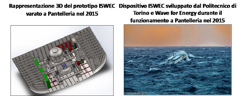 In questo contesto si inserisce il gruppo di ricerca MOREnergy Lab del Politecnico di Torino coordinato dalla professoressa e vicerettrice Giuliana Mattiazzo che da oltre 10 anni contribuisce allo sviluppo del convertitore di energia da moto ondoso chiamato ISWEC (Inertial Sea Wave Energy Converter). Questo innovativo dispositivo è sviluppato dalla collaborazione sinergica fra il Politecnico di Torino, lo spin-off Wave for Energy ed Eni. Il sistema si presenta come uno scafo galleggiante ormeggiato sul fondale marino e contiene al suo interno due giroscopi, che funzionano come fossero due trottole in rotazione. Il movimento di beccheggio dello scafo induce il moto di questi due giroscopi e tramite dei generatori elettrici è possibile estrarre potenza elettrica. Punto di forza di questo dispositivo è la presenza di tutti i sistemi meccanici ed elettrici all’interno dello scafo a tenuta stagna e quindi non a contatto con l’ambiente marino altamente corrosivo e dannoso. Ne consegue quindi una maggiore affidabilità, durabilità e facilità delle operazioni di manutenzione ordinaria e straordinaria.