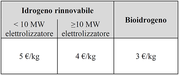 Incentivi proposti per la produzione di H2 rinnovabile e bioidrogeno