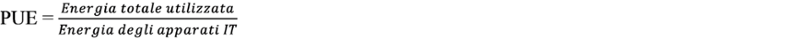 Ma come si sono evoluti i sistemi di raffreddamento per far fronte a questa continua richiesta di capacità refrigerante? Prima di addentrarci nei tre principali design di raffreddamento di datacenter è necessario introdurre la misura più diffusa per valutare grossolanamente l’efficienza di un datacenter, il Power Usage Effectiveness o PUE. Si tratta di un semplice rapporto: