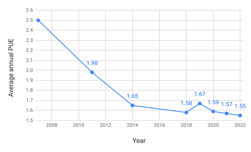 Questo rapporto cattura l’intuizione che nel mondo ideale tutta l’energia dovrebbe essere utilizzata per alimentare gli apparati di rete calcolo e storage, ma poiché raffreddare può richiedere l’uso di energia questo rapporto è inevitabilmente maggiore di uno. All’aumentare dell’energia necessaria per i datacenter si è quindi prestata sempre più attenzione a questo aspetto anche per assicurare il controllo dei costi di esercizio. Ad oggi i datacenter più efficienti hanno un PUE (misurato su base annuale) inferiore a 1,2-1,15.