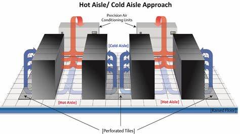L’architettura dominante dei datacenter è stata per decenni basata sul raffreddamento dell’aria che viene aspirata dagli apparati con ventole che assicurano il passaggio della stessa attraverso scambiatori di calore che dissipano il calore in eccesso dagli apparati. L’aria calda viene quindi poi recuperata per essere nuovamente raffreddata da sistemi di condizionamento, sia basati su compressione che, più recentemente, su evaporazione.