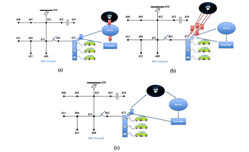 Fonte: 978-1-53986-5541-2/18/$31.00 © 2018 European Union]: (a) Falsa Data Injection attack; (b) Man-in-the-Middle attack; (c) Denial of Service attack