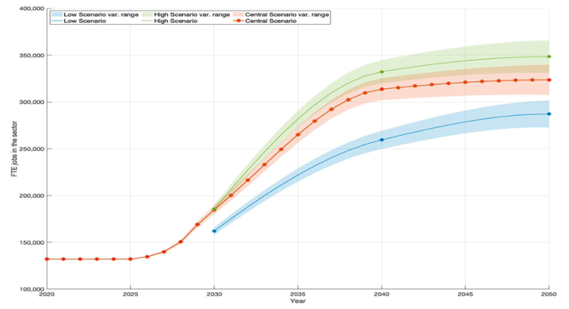 Relativamente agli aspetti socioeconomici, la diffusione dei biocarburanti avanzati potrebbe arrivare a rappresentare circa lo 0,07%-0,2% del PIL dell'UE-27 previsto per il 2030, sulla base dei valori di mercato e degli scenari considerati. L'occupazione netta nel settore, attualmente pari a circa 140.000 posti di lavoro, dovrebbe crescere notevolmente, arrivando a 180.000 posti nel 2030 e più che raddoppiando entro il 2050, sempre in funzione dello scenario considerato.