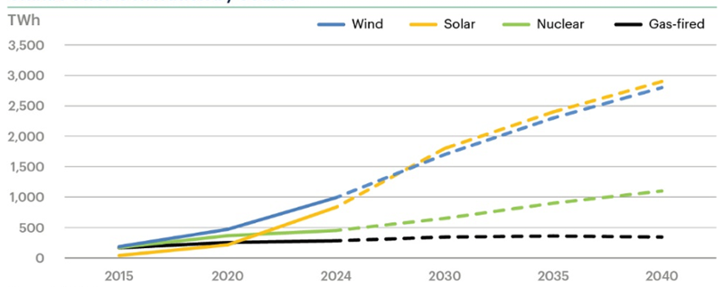 At the same time, the rapid expansion of alternative energy sources is likely to further suppress gas demand. China remains the world’s largest builder of clean energy: over the past five years wind, solar and nuclear generation have all grown strongly. Wind and solar generation nearly tripled, rising from roughly 730 TWh in 2020 to over 1,820 TWh in 2024. Nuclear output also advanced steadily, with multiple reactors under construction. ICIS expects these three sources combined to reach c. 5,600 TWh by 2035 — almost triple the 2024 level. Such expansion will erode gas competitiveness, particularly in the context of China’s carbon-peaking commitment by 2030.