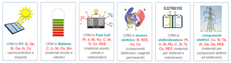 Tutte le tecnologie della transizione energetica sono dipendenti dall’approvvigionamento di Materie Prime Critiche (MPC) e Strategiche (MPS). Batterie, pannelli fotovoltaici, motori elettrici, elettronica di potenza, come cavi elettrici e trasformatori, sono tutte tecnologie realizzate con l’impiego di materie prime, come litio, silicio, terre rare e rame, che vengono definite critiche e/o strategiche, secondo quanto stabilito dalla Commissione Europea nel documento “Study on the critical raw materials for the EU 2023” (fig. seg).