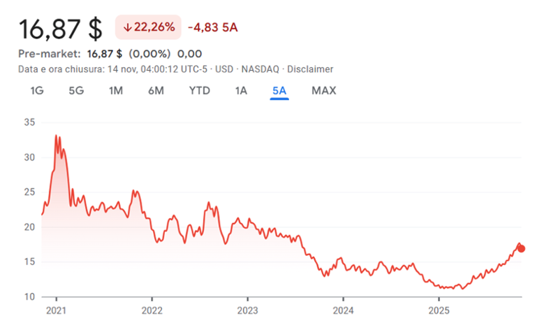 Oggi la IEA torna sui suoi passi e cambia narrazione, reintroducendo nel WEO uno scenario (Current Policies Scenario, CPS) che aveva abolito da un pezzo poiché troppo incentrato sui fossili e, dunque, superato. Perché questo ritorno? Nella sessione di domande e risposte al termine dell'evento di lancio del WEO, alla domanda sulle ragioni della reintroduzione dello scenario CPS - se esse risiedessero nella spinta di un’Amministrazione americana oggi incline alla difesa del paradigma fossile - Birol ha risposto negativamente, individuandola nell’incertezza. Poiché vi sono crescenti elementi di incertezza economica, energetica e geopolitica, la IEA ha ritenuto opportuno ampliare il range dei futuri possibili introducendo un nuovo scenario. Se, da una parte, questa spiegazione poggia su un elemento di verità, dall’altra è verosimile che il nuovo clima politico abbia influenzato l’Agenzia, così come il forte vento green l’aveva condizionata intorno al 2020, facendo di essa l’alfiere dell’imminente rivoluzione verde. Perché questo si pensava allora, che l’economia green fosse in fase di decollo e che le rinnovabili avrebbero preso il sopravvento in un pugno di anni. Lo pensavano molti studiosi, commentatori, politici e, soprattutto, lo pensava il mercato. Quale esempio della sbornia verde dell’epoca, riportiamo il grafico del fondo Ishares Global Clean Energy, di BlackRock, che investe in aziende di tutto il mondo attive nella produzione di energia verde.