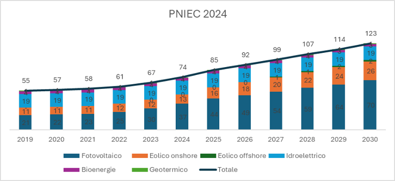 Fonte: elaborazione AGICI su dati Terna e PNIEC 2024