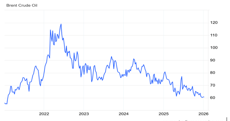 Prezzo del Brent negli ultimi 5 anni (doll/b)